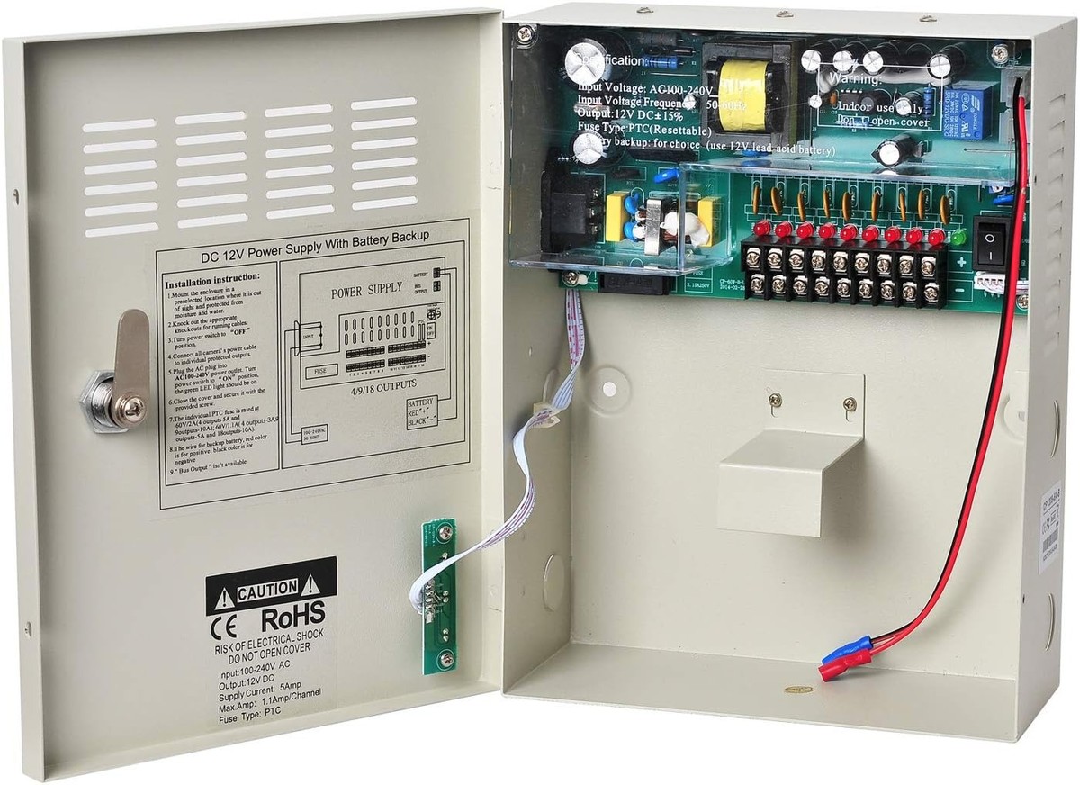 Suitable for CCTV Camera, PTZ, IR Illuminators, Video Process, Access Control, etc. Battery Backup: Use 12V Lead-acid battery (Not included)