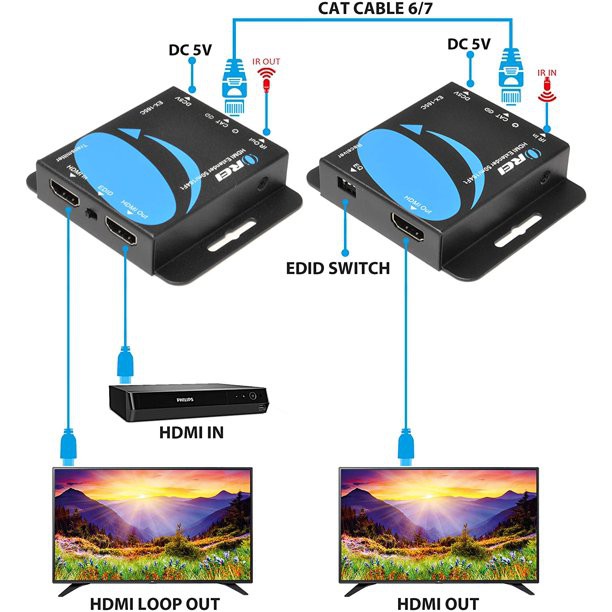 It can Transmit HDMI 1080P signal to above 50M (1645ft) by using UTP Cat5e/6. Perfect for home/office for PC, Game Consoles, Blu Ray Players. Designed to convert HDMI signal to standard TCP/IP and transmit by internet cable or lan. With the advantage of TCP/IP standard.