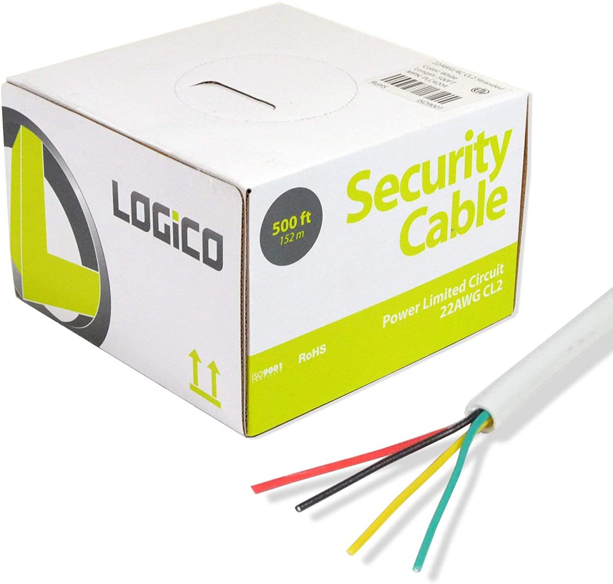 LOGICO Security Wire Burglar Alarm 22/4 Cable 500FT Stranded White 500′ Speaker Cable